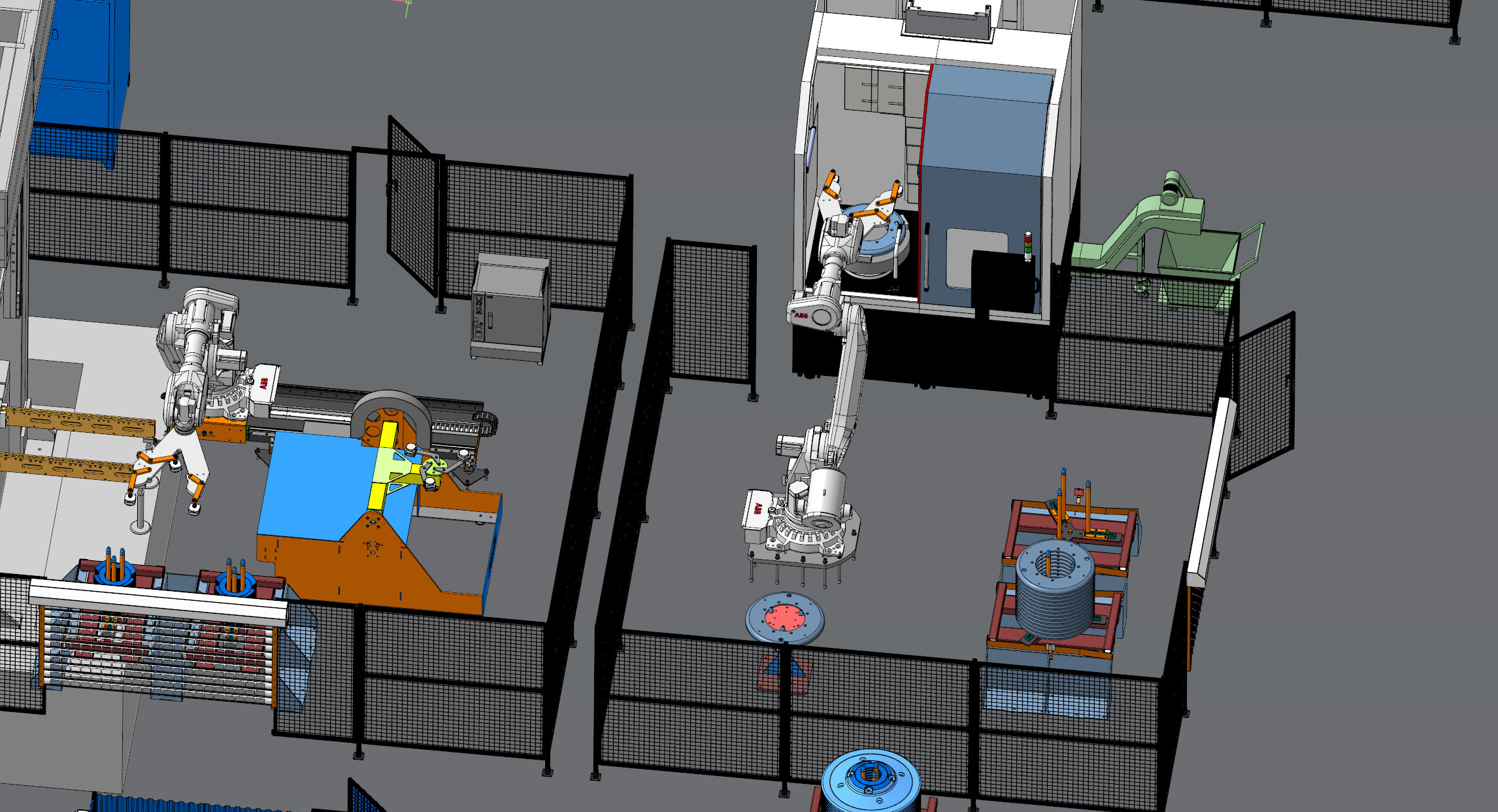 Комплексы обработки включают резку, штамповку, сварку, мехобработку и мойку. Роботы-транспортеры перемещают заготовки между операциями, используя маршруты, заложенные в программной документации.