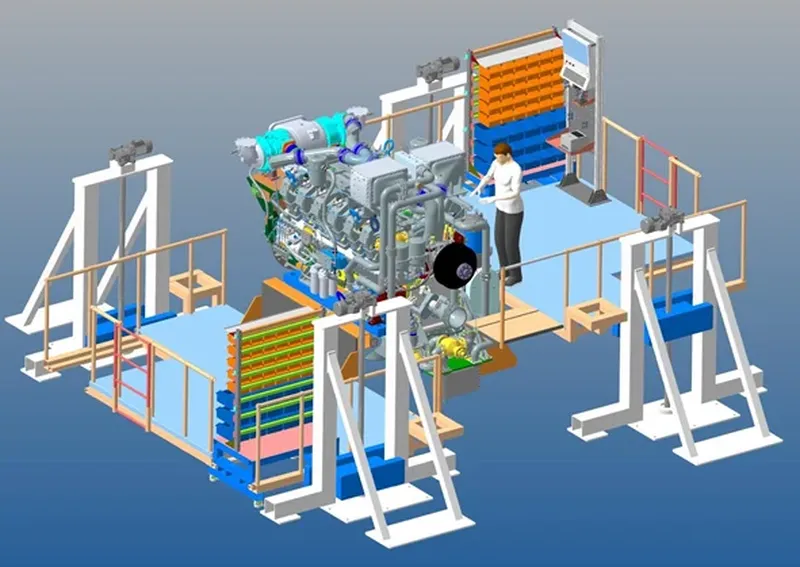 - Интеграция вспомогательных систем. Установка систем питания, смазки, охлаждения и выпускных коллекторов.
