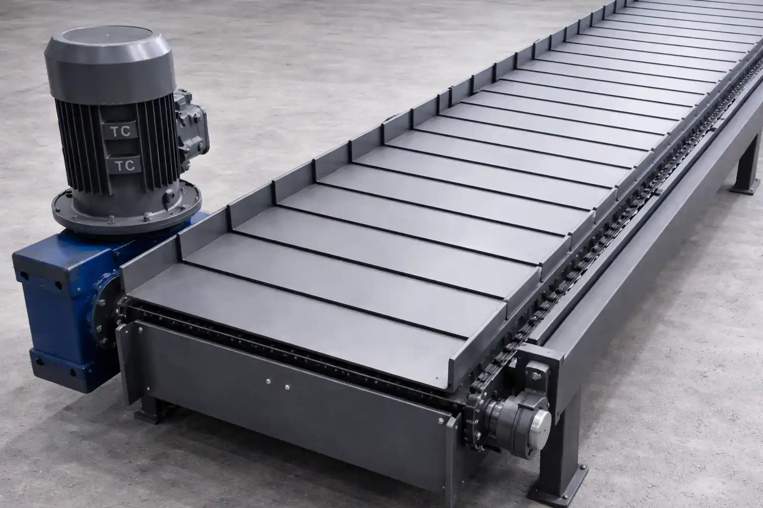 Пластинчатые конвейеры применяют в металлообработке для перемещения тяжелых, крупнокусковых, острых и горячих материалов, таких как металлическая стружка, окатыши и нагретые заготовки, где ленточные транспортеры не справляются. Их преимущество — высокая прочность, устойчивость и возможность перемещения груза на наклонной траектории до 45 градусов, а недостаток — солидный вес конструкции и необходимость мощного привода из-за повышенного трения.