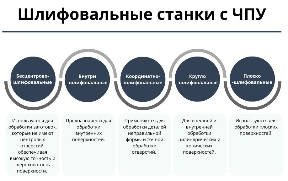 Шлифовальные станки удаляют материал, помещая заготовку в контакт с вращающейся абразивной лентой или шлифовальным кругом, который снимает заданный слой металла. Шлифовальные станки могут быть предназначены для предварительной или для финишной обработки.
