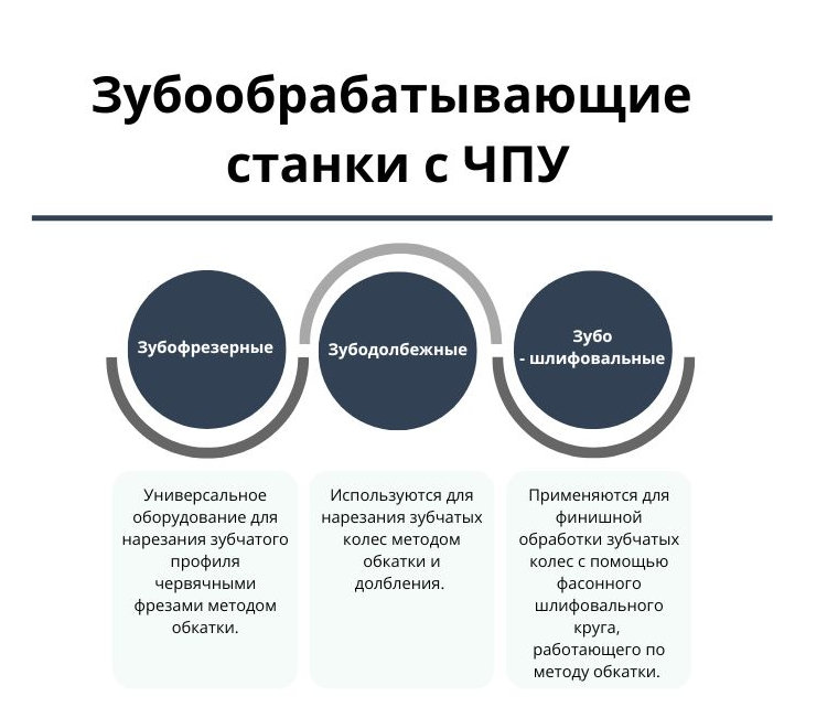 Станки работают по методу обкатки (где инструмент и заготовка имитируют работу реального зацепления) или методом скользящего резания. Станки обрабатывают различные виды зубчатых колес и шлицев, в том числе цилиндрические, конические, червячные, с прямым и косым зубом.
